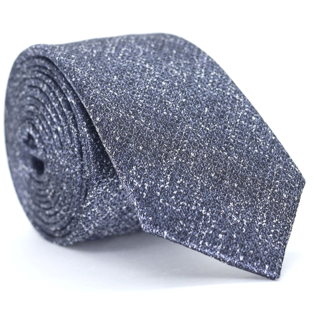 A combinação de cinza chumbo e branco proporciona um contraste elegante e versátil, enquanto a textura desenhada adiciona uma dimensão tátil e visual refinada. O tecido Jacquard garante um acabamento luxuoso e uma durabilidade superior, mantendo a gravata com uma aparência impecável e sofisticada.