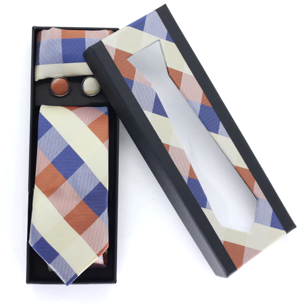 Eleve seu estilo com o KIT Caixa de Presente, Gravata Slim, Lenço e Abotoadura Azul Puro, Terracota, Off White e Branco. Uma escolha sofisticada e versátil para diversas ocasiões. Adicione este conjunto exclusivo ao seu guarda-roupa e esteja preparado para se destacar com elegância.